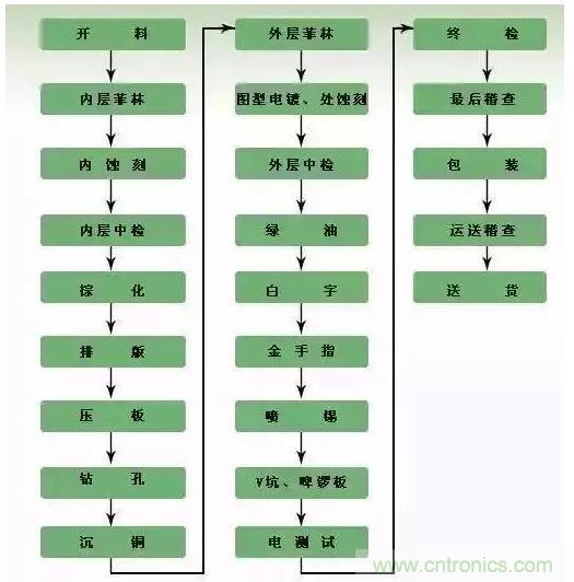【導(dǎo)讀】PCB的產(chǎn)業(yè)鏈從上至下依次為:上游原材料—中游基材—下游PCB應(yīng)用,大多數(shù)工程師把PCB文件,或者gerber文件發(fā)給廠家之后,就可以等著回板了。但是往往硬件研發(fā)崗位工作很多年都沒有機(jī)會(huì)去PCB生產(chǎn)廠去看看整個(gè)生產(chǎn)的過程。今天小編帶你了解一下PCB加工的完整過程。