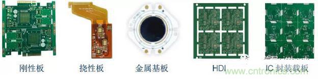 PCB 主要分為剛性板(單面板/雙面板/多層板),柔性板,HDI 基板,IC 封裝基板以及金屬基板。