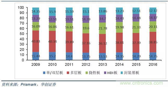 在計(jì)算機(jī)應(yīng)用領(lǐng)域,PCB產(chǎn)值占比由2009年的32%逐步下降至2016年的27%。主要由于計(jì)算機(jī)產(chǎn)業(yè)今年來增長(zhǎng)逐步放緩;