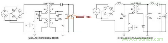 兩個電路的區(qū)別就在于二極管的接法略有不同,圖(b)這個電路能達(dá)到更高的效率而且可以實現(xiàn)軟開關(guān)。