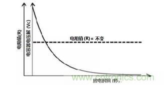圖5:電阻值不變時(shí)放電時(shí)間與電容器電壓降關(guān)系圖