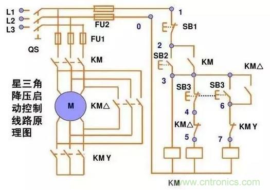 星三角我上圖分析過了,控制電機正反轉(zhuǎn)也分析過了。兩圖合一就是這個圖了,喜歡的朋友可以自己學(xué)著分析一下。