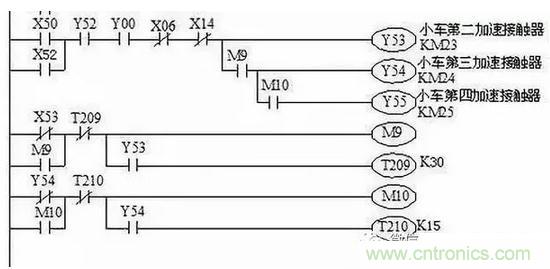 無論多么復雜的梯形圖,都是由一些基本單元構成的。按主電路的構成情況,利用逆讀溯源法,把梯形圖和指令語句表分解成與主電路的用電器(如電動機)相對應的幾個基本單元,然后一個環(huán)節(jié)、一個環(huán)節(jié)地分析,最后再利用順讀跟蹤法把各環(huán)節(jié)串起來。