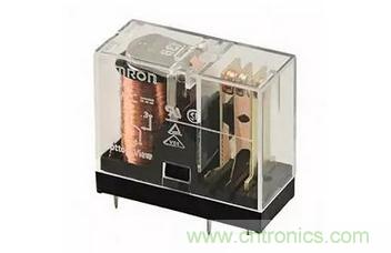 圖2:Omron Electronic的印刷電路板安裝式G2R-1-DC24通用繼電器在24V時的額定切換電流為10A。(圖片來源:Omron Electronics)