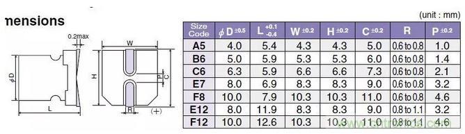 貼片固態(tài)電容尺寸