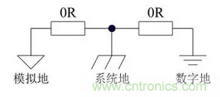 不一定是0R電阻,用磁珠可能效果更好,如果你做模擬信號對干擾很敏感,你會體會到這個。