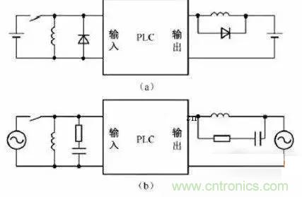 當PLC輸入輸出端接有感性負載元件時,直流輸出的續(xù)流管保護(直流電路兩端并聯(lián)續(xù)流二極管),交流輸出阻容吸收電路。