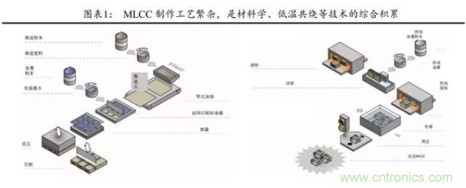 電介質(zhì)陶瓷粉料 的材料技術(shù)、介質(zhì)薄層化技術(shù)、陶瓷粉料和金屬電極的共燒技術(shù)被譽(yù) 為 MLCC 行業(yè)最核心的三大技術(shù)。