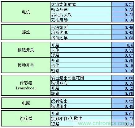 【導(dǎo)讀】以下總結(jié)摘錄MIL-HDBK-338B,美軍可靠性設(shè)計手冊來為FTA(故障樹)做一些支持。如果我們想要進行FTA的定量分析,一定要把可靠性預(yù)測先做完,在可靠性前一定要把電壓分布表和溫度分布先進行初步的運算,通過下面的的表格,大概可以預(yù)計失效發(fā)生的時候故障的分配比例。