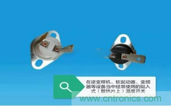 溫度開(kāi)關(guān)的額定電流值(雙金屬片間流過(guò)電流值)一般有1A、2A、5A三個(gè)等級(jí)。溫度開(kāi)關(guān)常見(jiàn)的封裝形式有塑封片狀、金屬殼長(zhǎng)條形等,其在電炒鍋、電餅鐺、電烤箱等電熱炊具中被廣泛使用;而在軟啟動(dòng)器、變頻器、逆變式焊機(jī)等工控設(shè)備中,溫度開(kāi)關(guān)多被固定在大功率元件(晶閘管、IGBT)背后的鋁制散熱片上;此外溫度開(kāi)關(guān)還會(huì)被植入電動(dòng)機(jī)、大容量變壓器繞組內(nèi),充當(dāng)超溫預(yù)警、溫度保護(hù)元件。