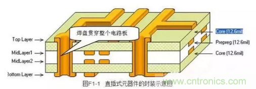 表貼式的元器件,指的是其焊盤只附著在電路板的頂層或底層,元器件的焊接是在裝配元器件的工作層面上進行的,如圖所示。