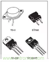三極管的常用封裝主要有TO-18(普通三極管)、TO-220(大功率三極管)、TO-3(大功率達林頓管)和TO-92A(普通三極管)等,如圖F1-13所示。