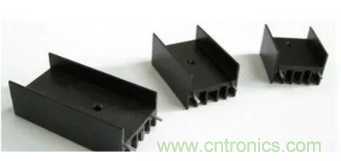 在實際使用過程中,用戶常常在穩(wěn)壓源上附加散熱片,以避免穩(wěn)壓源長時間工作在大負載下,散熱條件不足,從而造成過高的溫升而損壞元器件和電路板,圖F1-17所示為常用的散熱片。