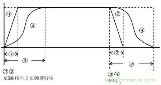 下圖是有無S 曲線時(shí)加減速特性對比。