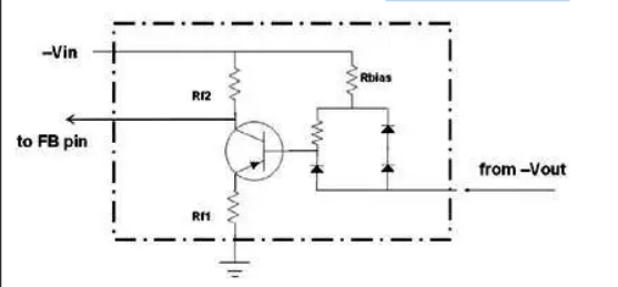 在使用低側(cè) FET 升壓 IC 實(shí)現(xiàn)的負(fù)降壓應(yīng)用中,輸出 (-Vout) 及其任何分壓樣本仍然以系統(tǒng)接地為參考。然而,由于 IC 接地引腳連接到 -Vin 而不是系統(tǒng)接地,因此 IC 將無法正確讀取 FB 電壓(也不會(huì)正確保持調(diào)節(jié)),因此需要轉(zhuǎn)換該電壓,使其以 IC 接地引腳為參考。