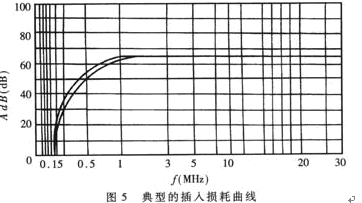 插入損耗用分貝(dB)表示,分貝值愈大,說明抑制噪聲干擾的能力愈強。鑒于理論計算比較煩瑣且誤差較大,通常是由生產(chǎn)廠家進行實際測量,根據(jù)噪聲頻譜逐點測出所對應(yīng)的插入損耗,然后繪出典型的插入損耗曲線,提供給用戶。