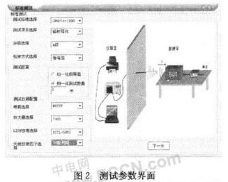 界面模塊貫穿于整個(gè)軟件系統(tǒng)是軟件的心靈之窗,它的優(yōu)劣直接影響了用戶使用整個(gè)系統(tǒng)的感受。充分考慮了用戶的需求和當(dāng)今軟件的發(fā)展趨勢(shì)之后,本文設(shè)計(jì)出人性化和易于理解的界面輸入程序。首先,標(biāo)準(zhǔn)選擇界面用戶只需選擇所需的標(biāo)準(zhǔn)系統(tǒng)會(huì)自動(dòng)從數(shù)據(jù)庫(kù)篩選被選標(biāo)準(zhǔn)所規(guī)定的測(cè)試項(xiàng)目、分類、檢波方式、測(cè)試所需儀器等供用戶選擇并自動(dòng)產(chǎn)生測(cè)試儀器連接配置圖。其次,軟件提供了多種界面風(fēng)格及色彩,加入了當(dāng)今軟件的流行元素,避免了用戶審美疲勞,如圖2、3所示。