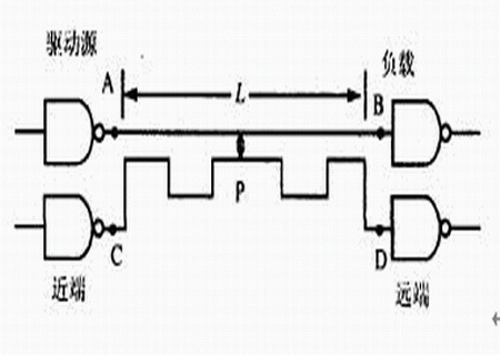 串?dāng)_是指一個(gè)信號(hào)在傳輸通道上傳輸時(shí),因電磁耦合而對(duì)相鄰的傳輸線產(chǎn)生不期望的影響,在被干擾信號(hào)表現(xiàn)為被注入了一定的耦合電壓和耦合電流。過(guò)大的串?dāng)_可能引起電路的誤觸發(fā),導(dǎo)致系統(tǒng)無(wú)法正常工作。如圖1的電路,AB之間的門(mén)電路稱為干擾源網(wǎng)絡(luò)(Aggressor Line),CD之間的門(mén)電路稱為被干擾源網(wǎng)絡(luò)(Victim Line)。只要干擾源一改變狀態(tài),我們就可以觀察到受害源處的脈沖串?dāng)_。