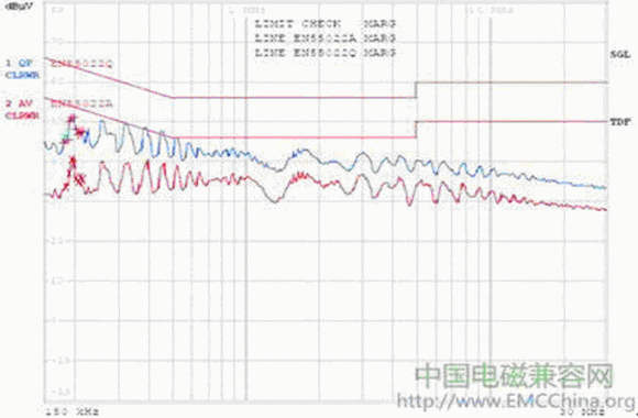 圖3 在230 VAC最差情況下符合EN55022A標(biāo)準(zhǔn)