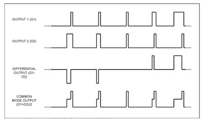 顯然,這一新技術(shù)雖具有一些優(yōu)點(diǎn),但放大器輸出將不再對稱。圖2所示的信號波形(以MAX9704立體聲D類放大器為例)具有較高的共模分量。