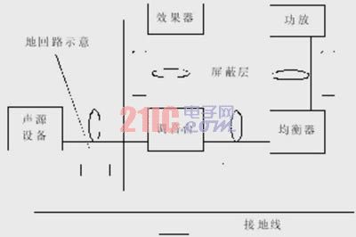 在不同設備的地線之間由于接地電阻的不同而存在地電位差,或在系統(tǒng)的內(nèi)部接地存在回路時,則會引接地噪聲,2個不同的音頻系統(tǒng)互連時,也有可能產(chǎn)生噪聲,噪聲是由2個系統(tǒng)的地線直接相連造成的。