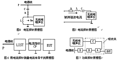 國際曾有人建議對小型電子設(shè)備采用類似于CLSPRl4一l(對應(yīng)的我國國家標(biāo)準(zhǔn)是GB4343—l《家用和類似用途電動、電熱器具、電動工具以及類似電路的無線電干擾特性的測量方法和允許值》)中所提供的吸收鉗(或稱為功率探針、鐵氧體鉗)方法來測試EUT對外的輻射功率。利用吸收鉗可以測量5MHz—300MHz的傳導(dǎo)干擾功率。采用此法的前提是EUT尺寸較小,其輻射到空間的能量主要是通過EUT的電源線等逸出的。因此,對這部分能量的測量可以用一個(gè)環(huán)繞電源線的吸收裝置來實(shí)現(xiàn)。這個(gè)吸收裝置便被稱為吸收鉗。這個(gè)方法的優(yōu)點(diǎn)是簡便易行,對環(huán)境要求不高,在屏蔽室里便可進(jìn)行,而且測試結(jié)果有很好的重復(fù)性和可比性。電壓、電流傳導(dǎo)干擾可分別由電壓探針和電流探針測出。圖4、圖5分別為電壓探針和電流探針原理圖。圖6為電流探針測量電流傳導(dǎo)干擾原理圖。功率探針原理見圖7。