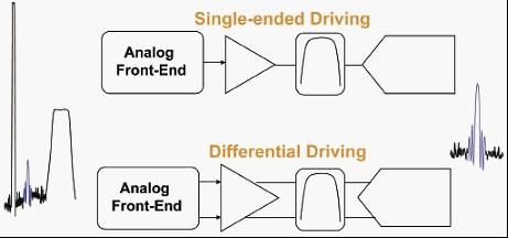 我們說差分信號(hào)鏈相對(duì)單端信號(hào)來講有很多優(yōu)勢。由于是差模信號(hào),輸出的是兩個(gè)差分信號(hào),實(shí)際上輸出的差模信號(hào)幅度相對(duì)擴(kuò)大了一倍,換一個(gè)角度來講,在同等輸出范圍條件下,工作電壓會(huì)更低。這樣,在要求低諧波失真的應(yīng)用中,就可以保證足夠的幅值余量。差分系統(tǒng)自身類似奇函數(shù)的特性可以消除系統(tǒng)中的偶次諧波項(xiàng),也就是說2次、4次、6次諧波等,在這些頻點(diǎn)上的諧波相對(duì)奇次諧波會(huì)很小甚至看不到。最后,由于信號(hào)的返回路徑不再是地平面,信號(hào)受地平面或是電源平面影響不是那么敏感,從而減少了噪聲的耦合引入,同時(shí)實(shí)現(xiàn)更好的抗電磁干擾效果。