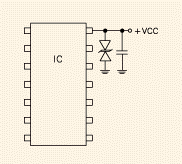 ESD對(duì)地線層的直接放電可能損壞敏感電路。在使用TVS二極管的同時(shí)還要使用一個(gè)或多個(gè)高頻旁路電容器,這些電容器放置在易損元件的電源和地之間。旁路電容減少了電荷注入,保持了電源與接地端口的電壓差。