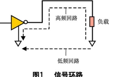 對(duì)低頻信號(hào),要使電流流經(jīng)電阻最小的路徑;對(duì)高頻信號(hào),要使高頻電流流經(jīng)電感最小的路徑,而非電阻最小的路徑(見(jiàn)圖1)。對(duì)于差模輻射,EMI輻射強(qiáng)度(E)正比于電流、電流環(huán)路的面積以及頻率的平方。(其中I是電流、A是環(huán)路面積、f是頻率、r是到環(huán)路中心的距離,k為常數(shù)。)