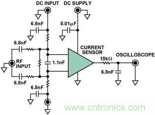 這兩種器件都在完全相同的條件下進(jìn)行測試。唯一不同就是AD8208在輸入引腳和電源引腳上都配有內(nèi)部低通RF輸入濾波器。在芯片上增添這樣的部件似乎微不足道,但是由于應(yīng)用通常由PWM進(jìn)行控制,這種情況下電流檢測放大器必須能夠承受最高45 V的連續(xù)開關(guān)共模電壓。因此,要保持精確的高增益和共模抑制性能,輸入濾波器必須嚴(yán)格匹配。