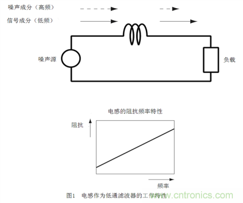 因此,如果將電感串聯(lián)插入噪聲通道,頻率較低的信號(hào)成分將容易通過,頻率較高的噪聲成分將不易通過。