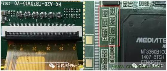 4、屏信號線和連接器遠(yuǎn)離PCB接口連接器至少1000mil。否則干擾會直接向外輻射或在外出電纜上耦合出電流來向外輻射。