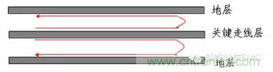 2、必須緊靠完整的參考平面布線,以保證其有最小的信號回路和連續(xù)的阻抗,優(yōu)選兩地平面之間。