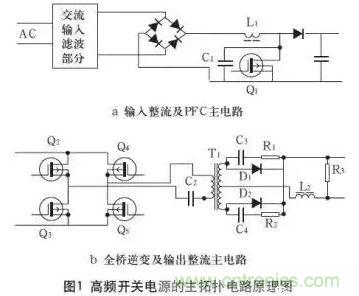 高頻開關電源的主拓撲電路原理,如圖1所示。
