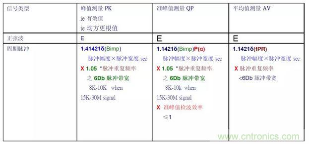 【導(dǎo)讀】最近一個重要客戶的機(jī)器測試分別要求測試QP,AV和PK(測試項是EN55022的傳導(dǎo)輻射CE),問起這幾個值之間的數(shù)值關(guān)系。PK QK AV的區(qū)別在于檢波器的RC參數(shù),公式是對標(biāo)準(zhǔn)的理想正弦信號而言。在電磁兼容測試工程實踐中,時變的信號目前是沒有公式去算的。