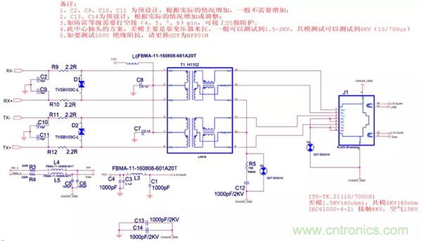 30、以太網(wǎng)EMC(浪涌)設(shè)計標(biāo)準(zhǔn)電路(差模要求較高方案)