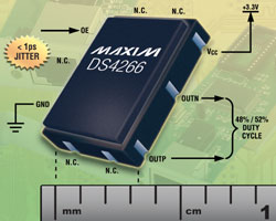 DS4266支持LVPECL和LVDS輸出。器件工作在-40°C至+85°C擴展級溫度范圍,提供節(jié)省空間的5.0mm x 3.2mm x 1.49mm、10引腳LCCC表貼陶瓷封裝。芯片起價為$4.50 (10,000片起,美國離岸價)??商峁悠芬约铀僭O(shè)計進程。