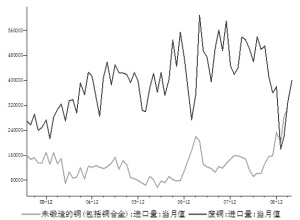 對于今年進(jìn)口量的預(yù)測,分析人士大都保持比較謹(jǐn)慎的態(tài)度。“今年我國精煉銅的進(jìn)口增加幅度可能保持在10%左右。”某業(yè)內(nèi)人士表示,銅的需求是跟著GDP走的,一般需求會略高于GDP增幅。