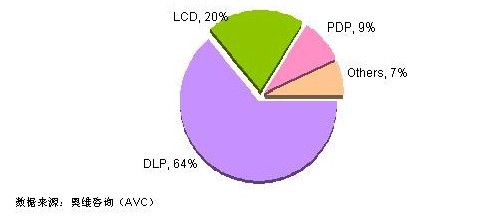 •  2009年上半年,DLP大屏幕占整體市場的64%,LCD占到20%,PDP占9%。