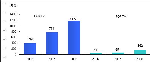 圖1 2006-2008年中國FPD TV市場年度規(guī)模增長