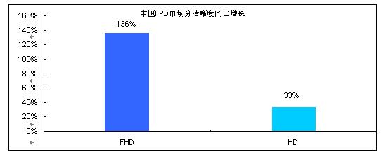 圖2 2009年1-4月中國FPD TV市場高清產(chǎn)品同比增長