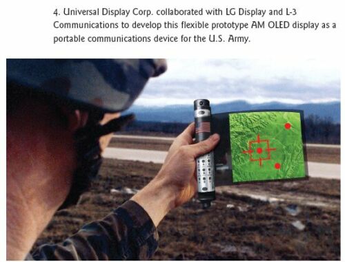 UDC演示了采用AM OLED的4英寸對角線原型。該原型的制造是UDC聯(lián)合LG Display和L-3 Communications的顯示系統(tǒng)部門一起完成的,它是ASU正在進行工作的一個補充(圖4)。UDC還在進行該顯示器觸摸屏版本的研發(fā)。