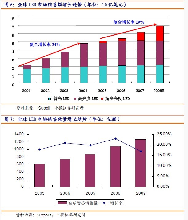 - 2008年高亮度和超高亮度LED市場年平均增長率將達(dá)到20%左右