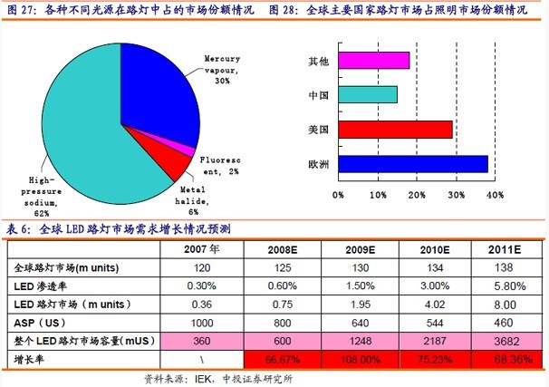 未來3-5年,LED路燈占全球LED市場份額將從2007年的1%上升到2011年的7%左右。