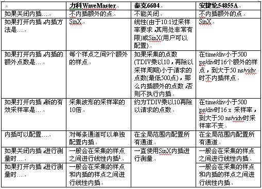示波器之間的其它重要差異是內(nèi)插規(guī)則。