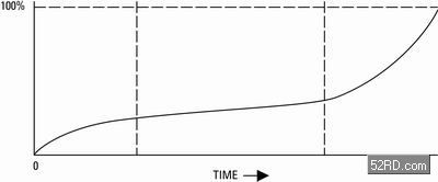 圖2顯示了在某時段內(nèi)的累積故障。這個概念在常用的產(chǎn)品故障曲線(又稱浴盆曲線)中得到進(jìn)一步的展示(圖3)。有關(guān)曲線包含3個清晰的區(qū)段,每個區(qū)段都包含了若干有可能造成故障的因素,也牽涉某些人士。他們可以因為某些行動而影響了客戶對可靠性的理解。