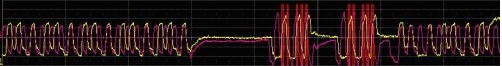 圖 1: DDR2 波形顯示了 Strobe (紅色) 和 Data (黃色)信號之間的時序關系