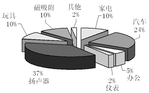 近幾年中國(guó)永磁鐵氧體應(yīng)用分類及市場(chǎng)比例