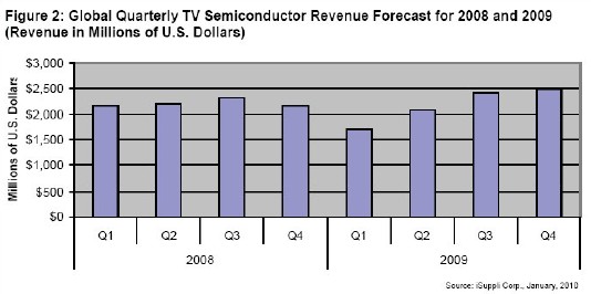 展望 2010 年,iSuppli 公司預(yù)測電視市場將恢