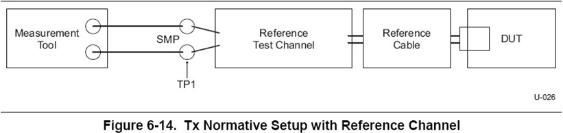 在USB3.0的TX的眼圖和抖動測試中,測量的是待測試信號經(jīng)過參考測試信道后TP1點的眼圖和抖動。如圖5中的Reference test channel即為參考測試信道,在規(guī)范中定義了long channel、short channel和3米電纜三種參考測試信道。如果使用long channel或者較長電纜,信號到達(dá)接收端時衰減比較大,眼圖已經(jīng)閉合,USB3.0芯片接收端使用了CTLE均衡器對信號進(jìn)行均衡后,信號眼圖的質(zhì)量將大大改善,所以要求測試儀器分析出CTLE均衡器處理后信號的眼圖和抖動。目前業(yè)界常用的是Intel的11英寸背板和3米USB電纜作為參考信道。